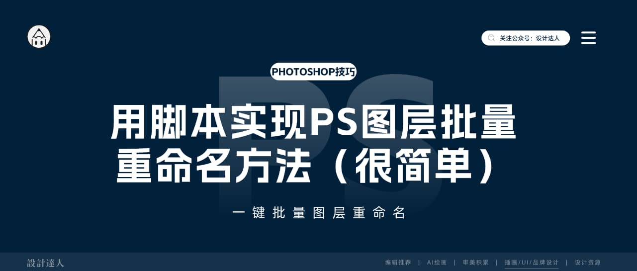 最近有一个需求,就是想把PS里的图层批量命名,同时是想图层有序号,比如批量命名为“设计达人”,那么所有就会是设计达人1、设计达人2…的方式来自动命名了。这里实用的方法就是Photoshop支持js[……]