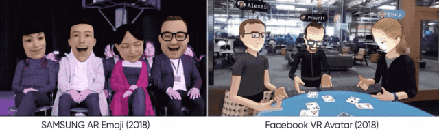 不止静止图像,AR相机还能识别用户的实时面部表情,也可以在视频上录制。随着技术的进步,现在可以呈现更详细和更真实的动作,比如当用户说话时,可以跟踪嘴巴和舌头的形状。如果是目前正在开发中的facebook AR 角色,它能够在虚拟空间里通过聚集同伴的角色来进行实时沟通与交流。除此之外,使用AR镜头还可以获得更丰富的体验,就好像直接在太空中一样。有了这种技术,角色服务在电信、游戏等各种领域几乎有着无限的潜力。
