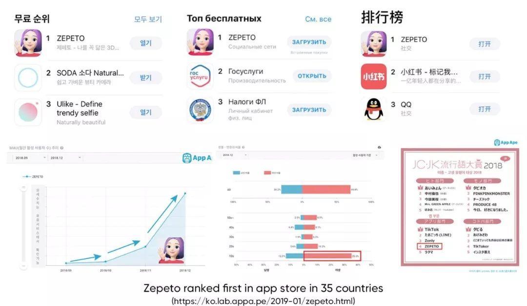 自2018年9月推出以来,ZEPETO在35个国家应用商店的免费应用类别中排名第一。自发布以来的短短三个月内,MAU(用户数量)增加了五倍,总下载量已超过1200万。(截至2018年12月20日)