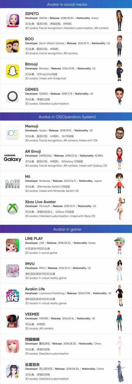 在本文中,我们将分享对于最近又逐渐流行起来的角色服务的见解。随着IT世界成为新维度的社交场合,在虚拟世界中扮演和代表我的avatar的存在与重要性正在与日俱增。与现实相似,用户把时间和金钱花在装饰avatar上来获得自我满足感,或者为了吸引其他人,围绕虚拟空间移动他们的角色和他人见面与交流。随着智能手机的发展,用于特定游戏或门户网站配置文件里的 avatar,最近开始越来越接近我们的生活。