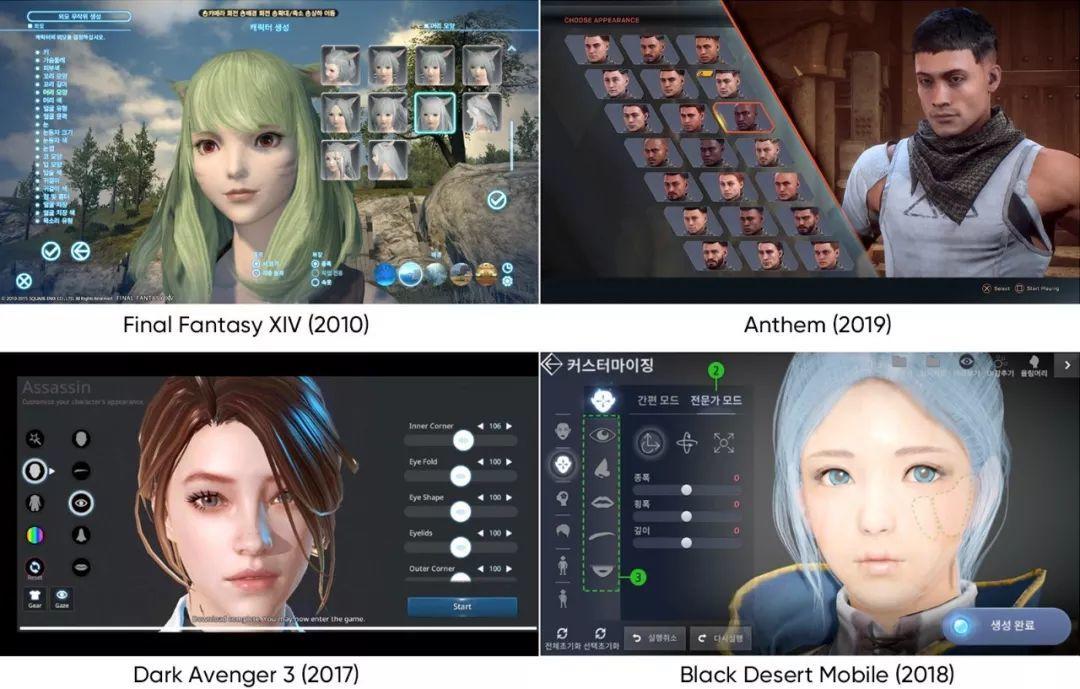 自定义是游戏行业近年来最重要的一部分,它从用户在几个预制面部中选择其中之一发展而来。现在,用户可以通过逐个调整每部分来“设计”全身,这种自定义允许用户创建更加多样性和个性化的面孔,许多用户都热衷于此。用户投入大量时间在自定义以及实际游戏体验上,甚至还有一些社区供他们共享和交换自定义文件。现在自定义在游戏中已经成为一种新的游戏,用户需要一个允许他们自由改变面部的系统,而不局限于开发者提供的选项。由此,很多角色服务提供者都尝试理解和注入用户喜欢的这些趋势与需求。
