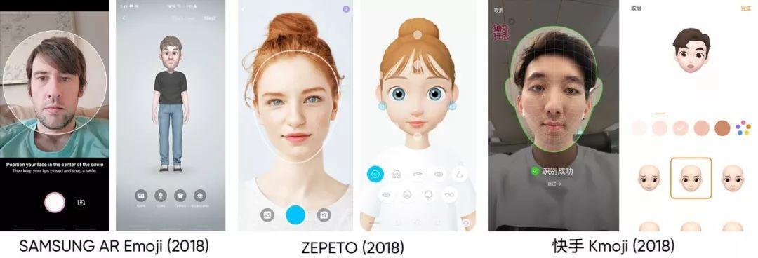 SNOW的ZEPETO,快手的kmoji用他们的技术识别用户的图片并自动创建3D角色。当然,创建之后,用户可以做进一步的修改。除了新颖的概念之外,这种服务还通过结合面部形状和特征等多种方式来给用户提供便利。“面部识别”的新技术特别有助于向大众推出这些角色服务。