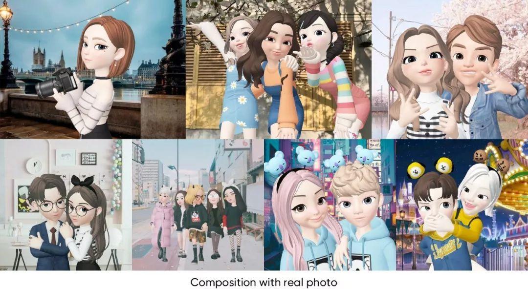 3D 角色的光线、颜色、构图和姿势都经过很好的调整以便以它们可以自然地与各种真实照片的背景相融合。通过这些功能和详细设置,用户可以将ZEPETO的角色带到真实世界并创建逼真的图像。这种体验给用户一种新鲜和有趣感。