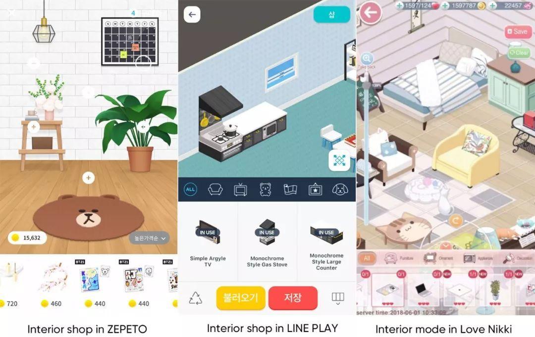 在角色服务中最重要的部分是“我的房间”。作为角色存在的用户界面,它起到给予角色真实感的重要作用。然而不仅仅是作为背景图像,它还起到补充角色的视觉风格的作用。许多服务都添加室内设计功能,它允许用户直接购买商品来装饰房间,这也是该服务的主要盈利模式。用户可以设计自己的房间与他们角色相配,访问他人的房间,交换信息和评价彼此的房间。