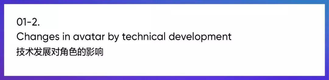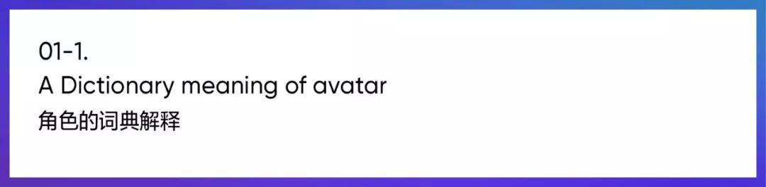 现在,从源头改变含义之后,在游戏或门户网站中能代表自己的人物形状被统称为Avatar。简而言之,Avatar是虚拟社会中代表用户的虚拟身体,也就是角色。角色过去主要用于网聊或网络游戏,现在它的使用范围扩展到网购中心、虚拟教育,以及虚拟办公(会议)。角色将现实世界与虚拟空间连接起来,并且兼备匿名性和自主性的特征。过去,用户着迷网络空间的匿名性,现在他们也渴望表达自己,满足了这两面的角色正在吸引人们的关注。(Naver知识百科)