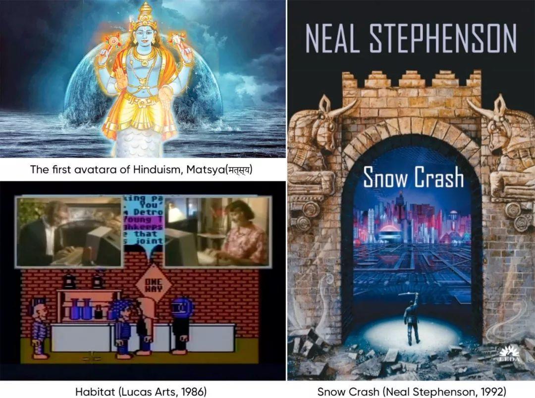 “avatar”一词起源于印度教,代表陆地形态的“神”的下降(印度教的“神”普遍被认为没有形体,能够以任何形式来显现自己)。在大众媒体中,“avatar”一词最早出现在1992年Neal Stephenson所写的科学小说《Snow Crash》中,意为在虚拟世界中虚构另一个我,又叫“虚拟实境”。在IT领域,“avatar”是对计算机用户自身形式的描述。第一个线上游戏的Avatar是1985年由LucasArts发布的online RPG“Habitat”,这是第一个用户可以控制自己的avatar并与其它用户产生交互的案例。(维基百科,NamuWiki)