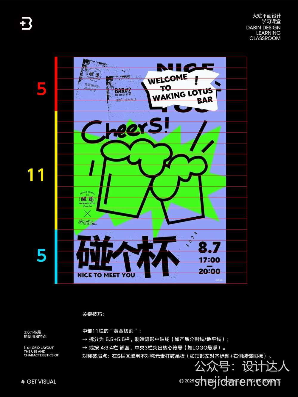 → 或按 4:3:4栏 嵌套,中央3栏突出核心符号(如LOGO悬浮)。