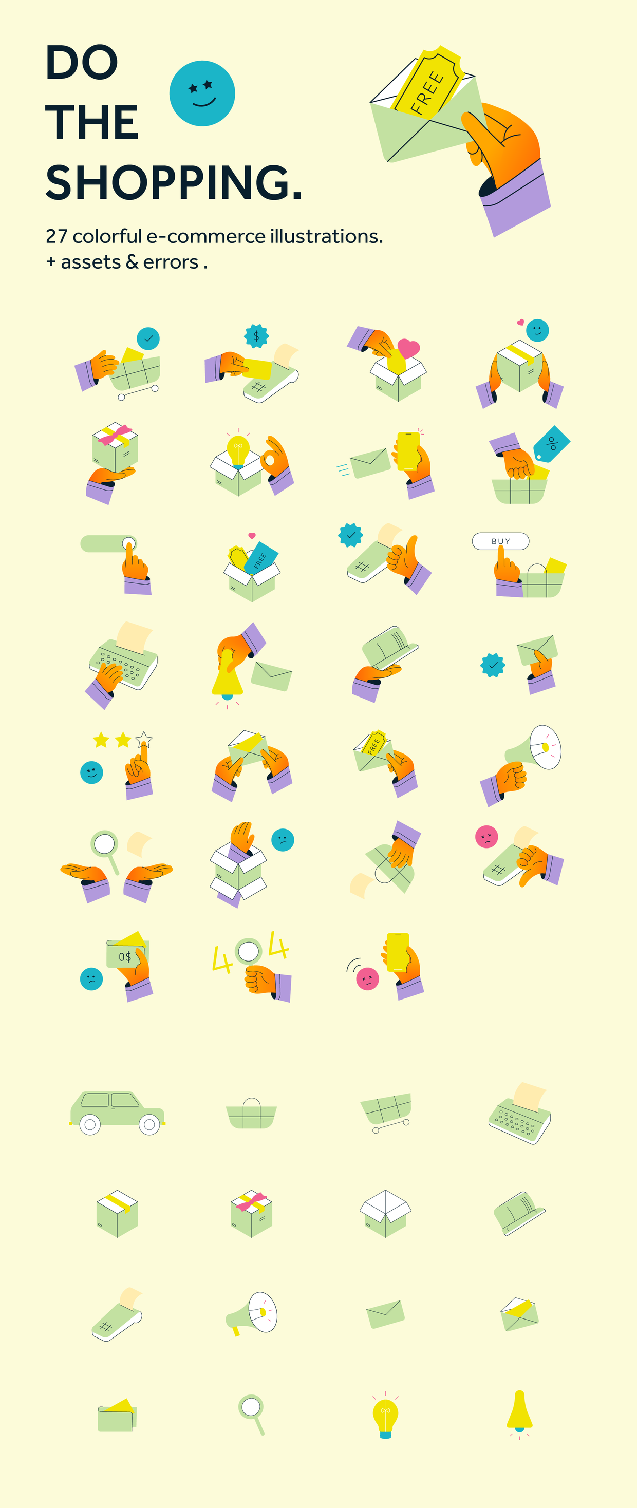 素材名称:【787】 电商网站必备的彩色购物主题插画合集