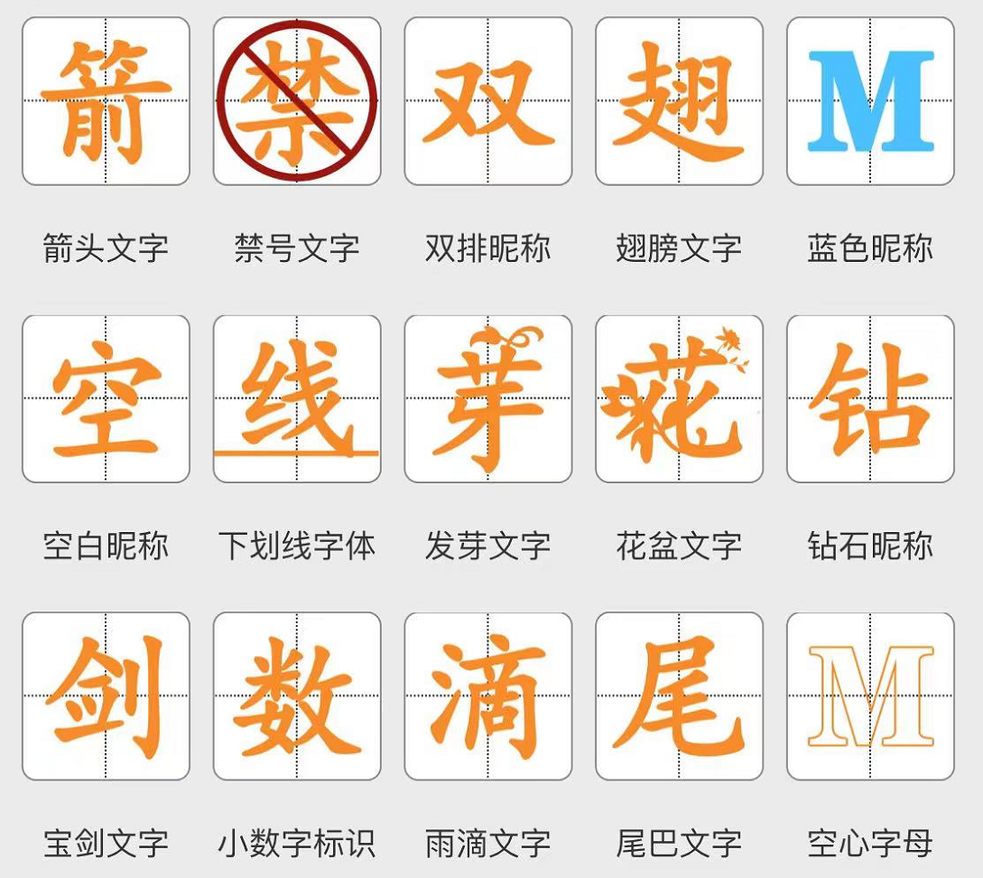 除了有蓝色文字昵称,也有其他的文字样式可以设置,此外还可以一键生成一些个性的头像和有趣的表情哦。操作步骤也是差不多的,感兴趣的小伙伴可以自己深入研究一下哦。