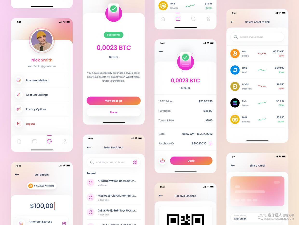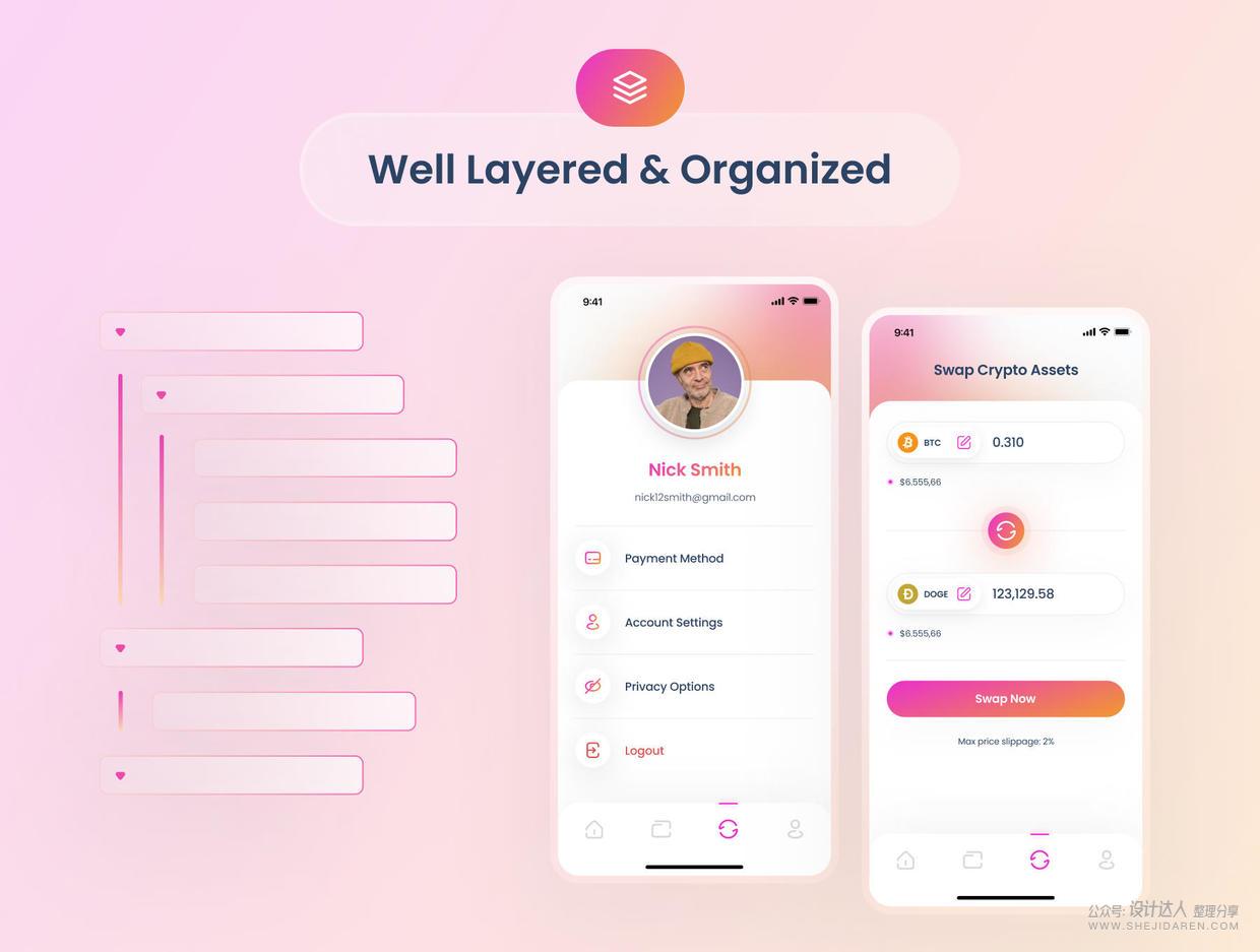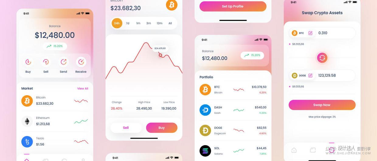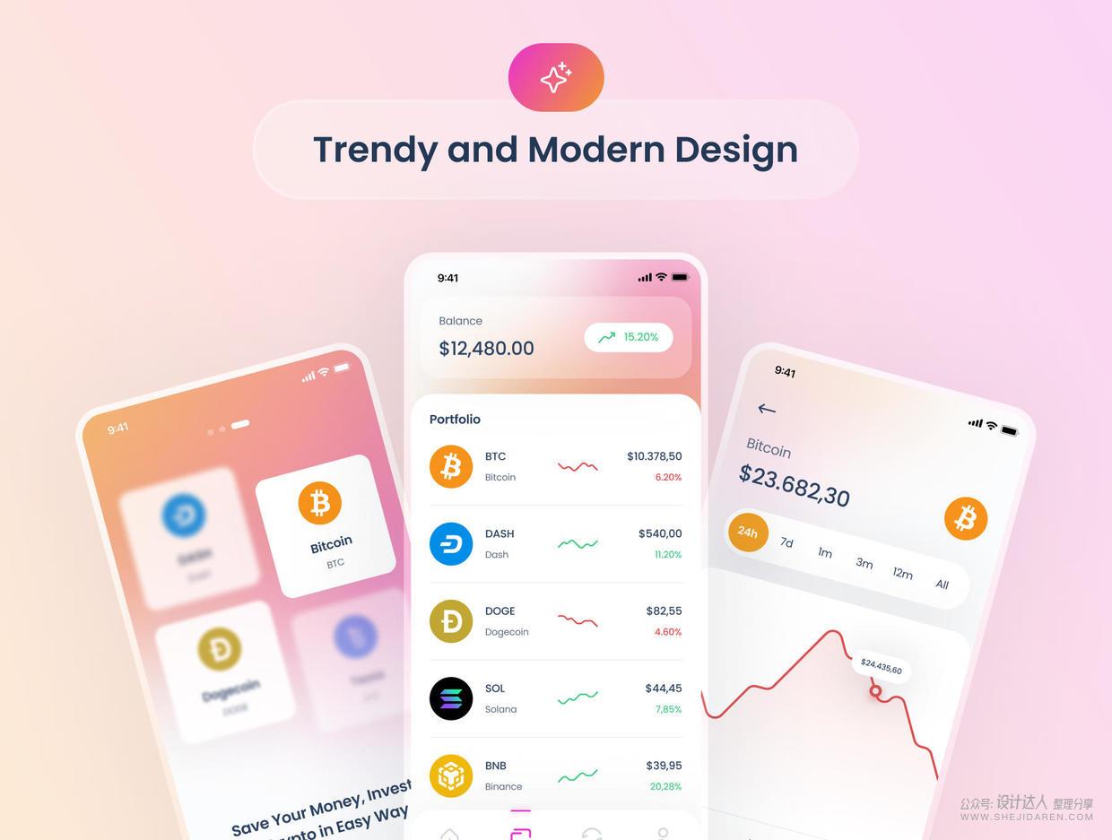 高质量加密钱包应用程序UI套件