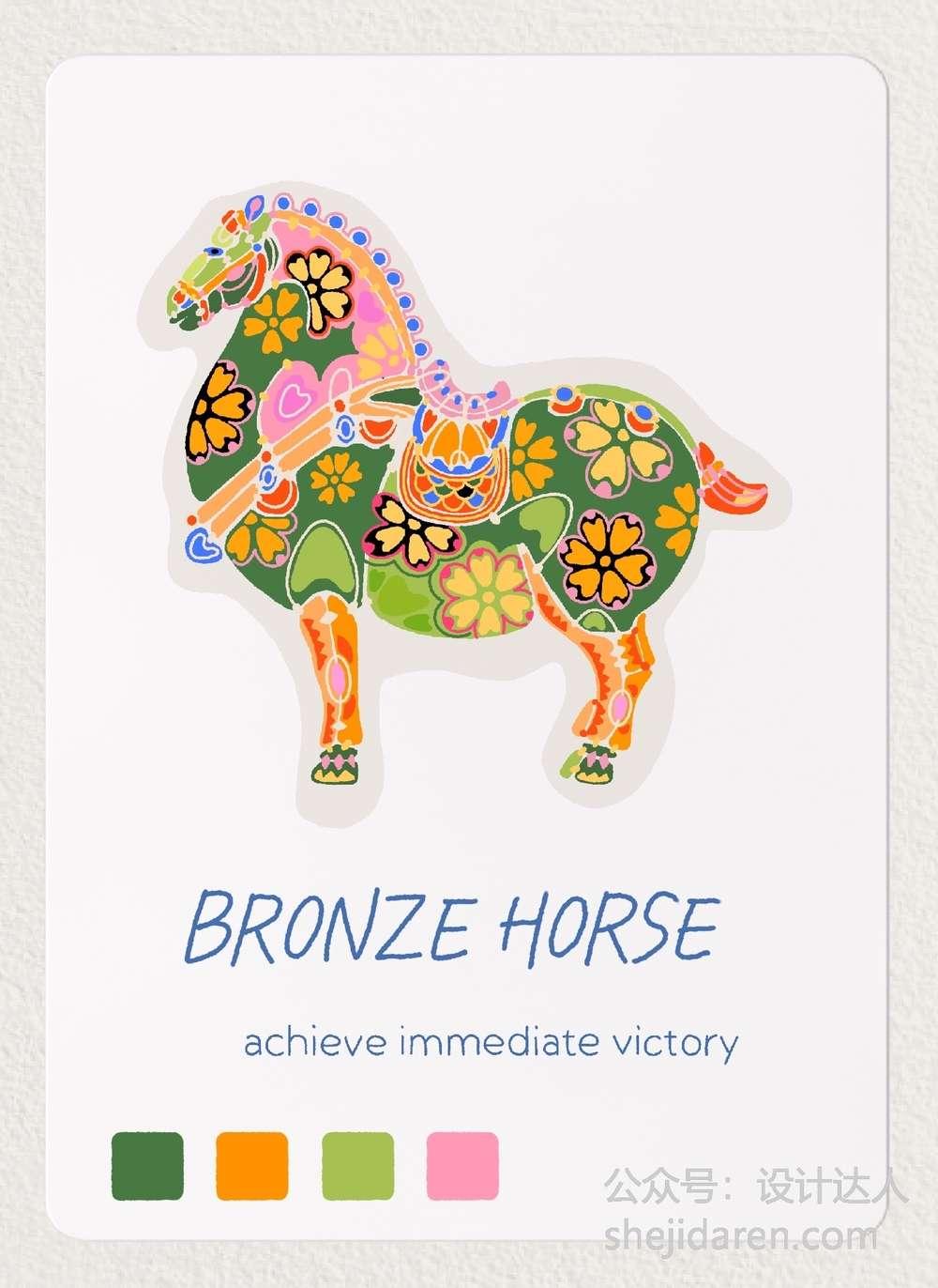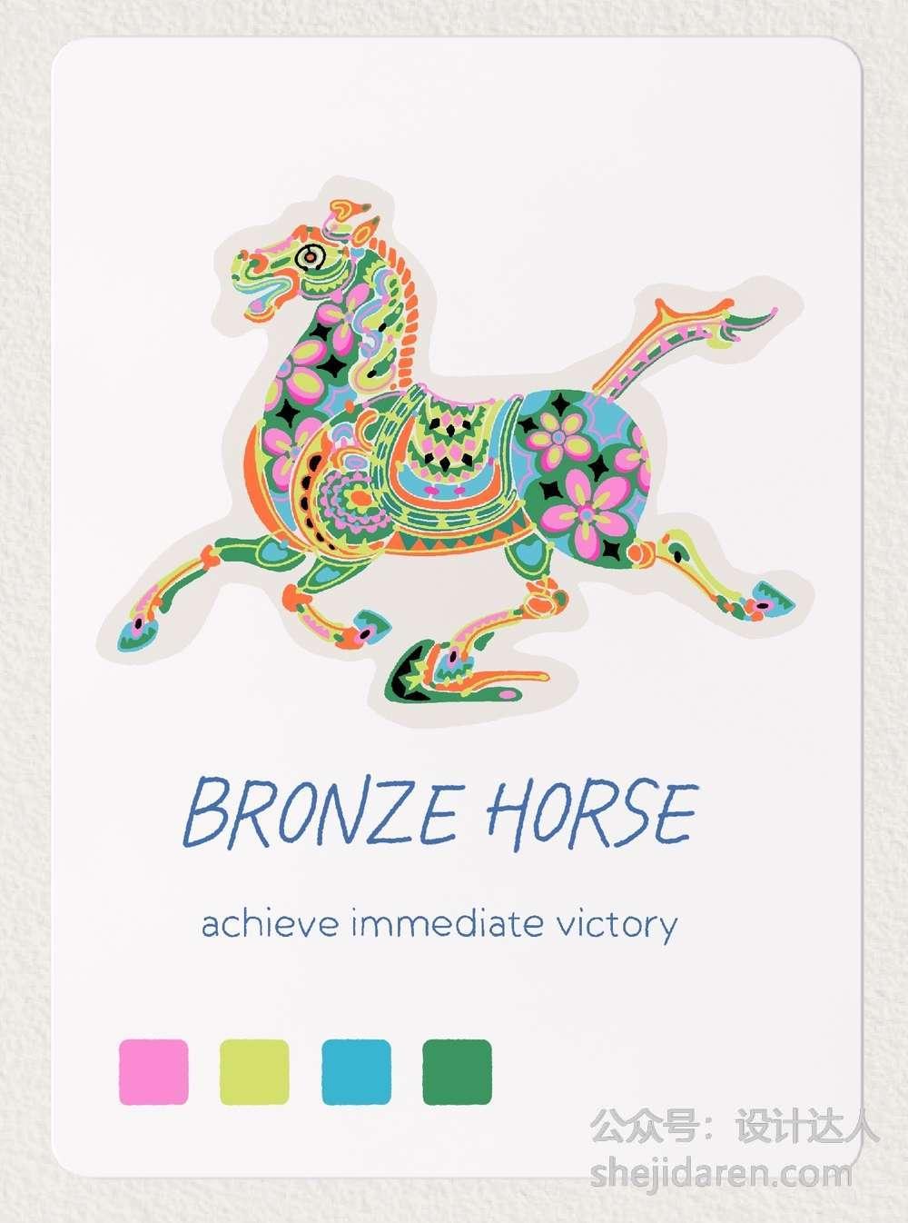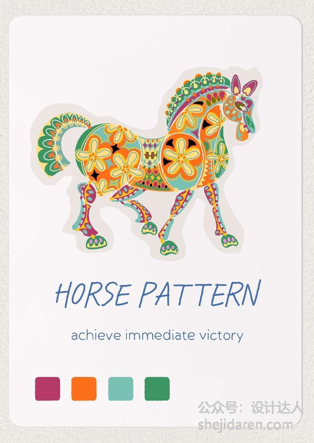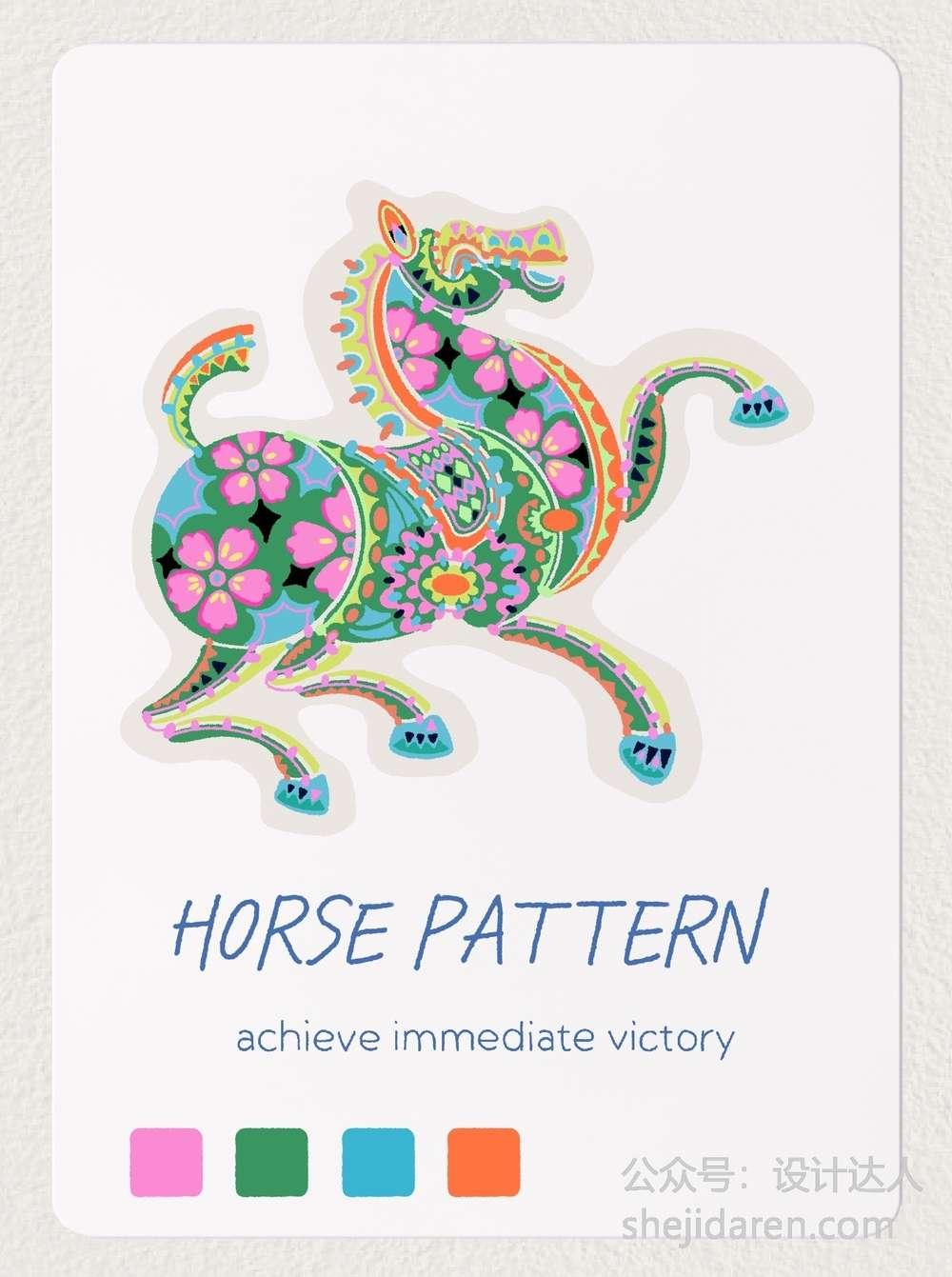 9张以马为主题的多巴胺配色插画欣赏: