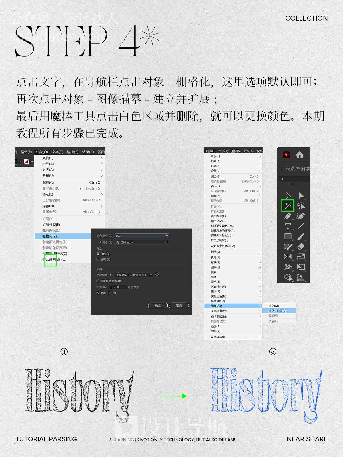 步骤五:栅格化与描摹