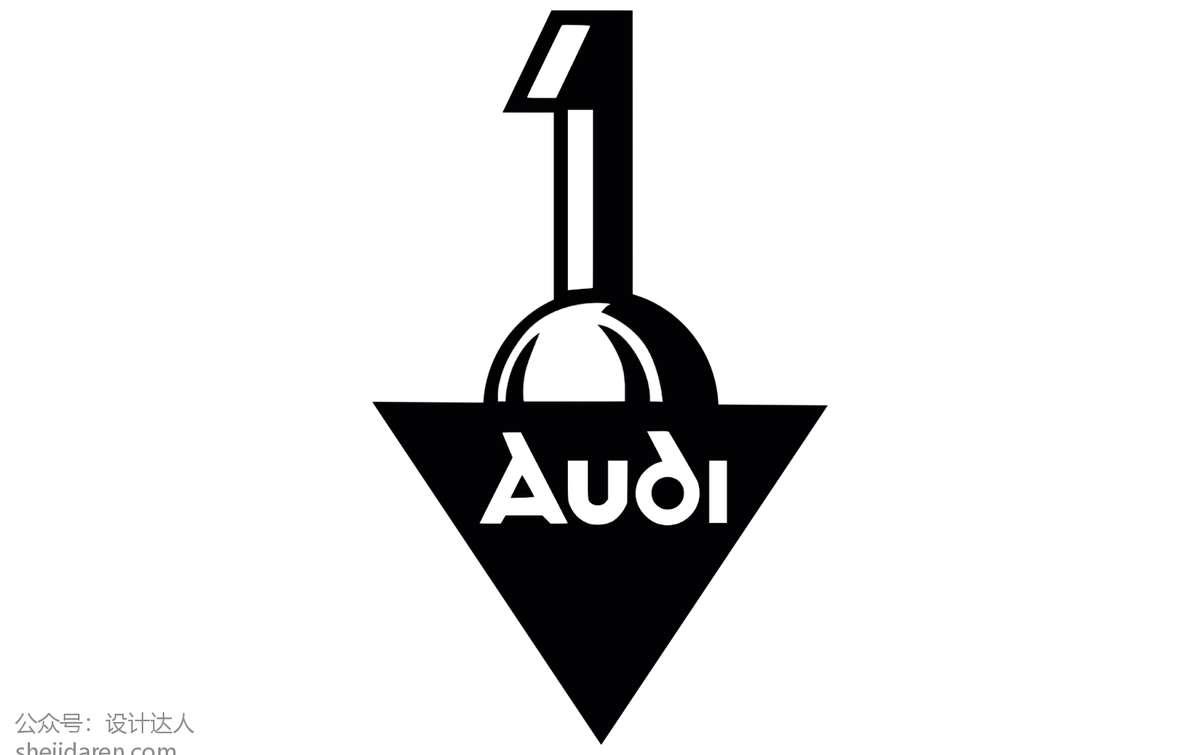 这个标志的理念是从黑色三角形后面半隐藏的球体中出现的数字“1”,指向下方。它的代表性名字“Audi”写在底部,并且是斜体,以及在黑色背景上的白色字体。