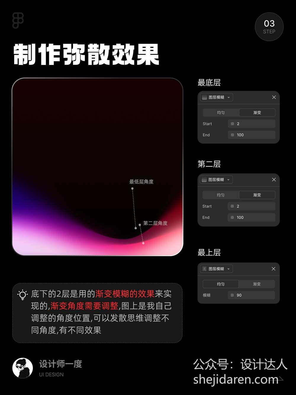 谁还在为卡片背景没质感发愁?今天分享超火的弥散光效果教程,Figma几步就能做出渐变朦胧的高级感,放在 UI 设计里真的绝了!