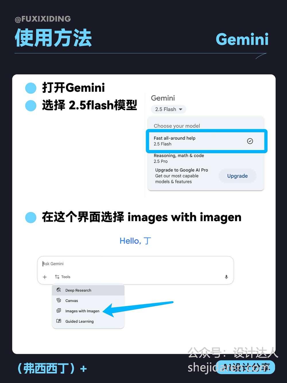 - 打开 Gemini,选择 2.5flash 模型,在界面选择 images with imagen。