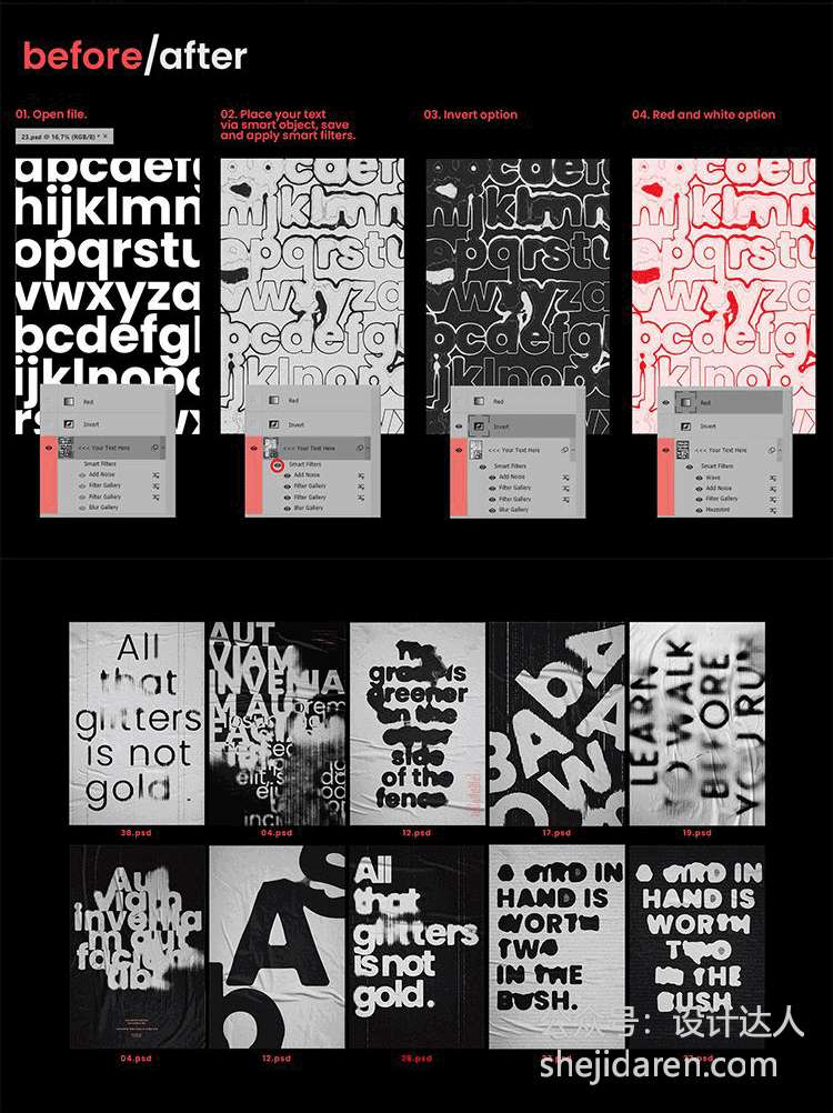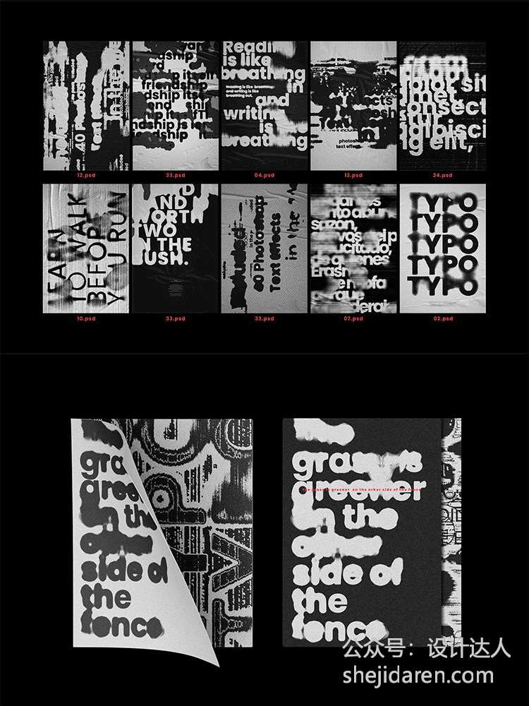 素材名称:【985】酸性噪点磨损故障风!海报文字字体效果样机 PSD 素材包