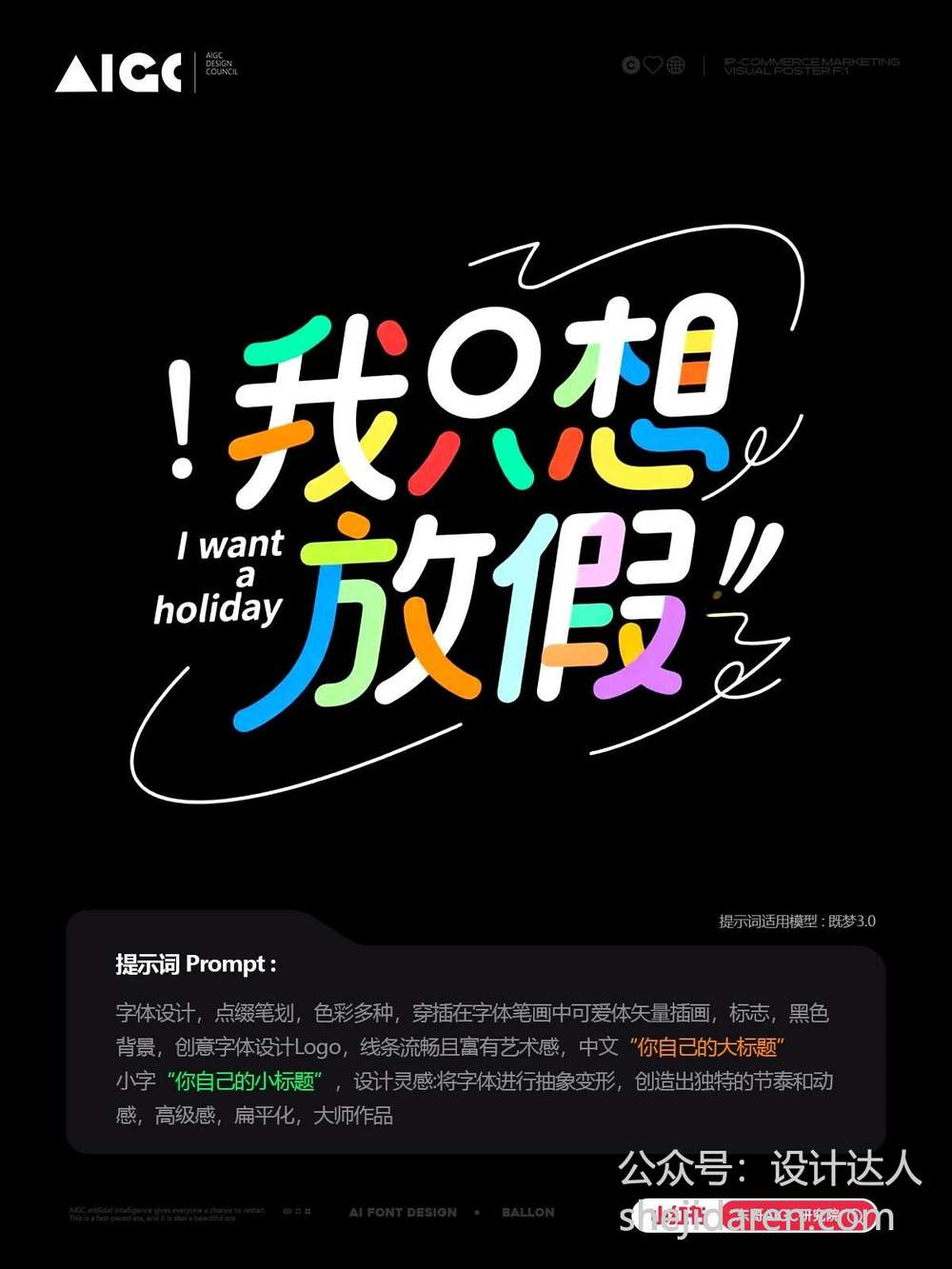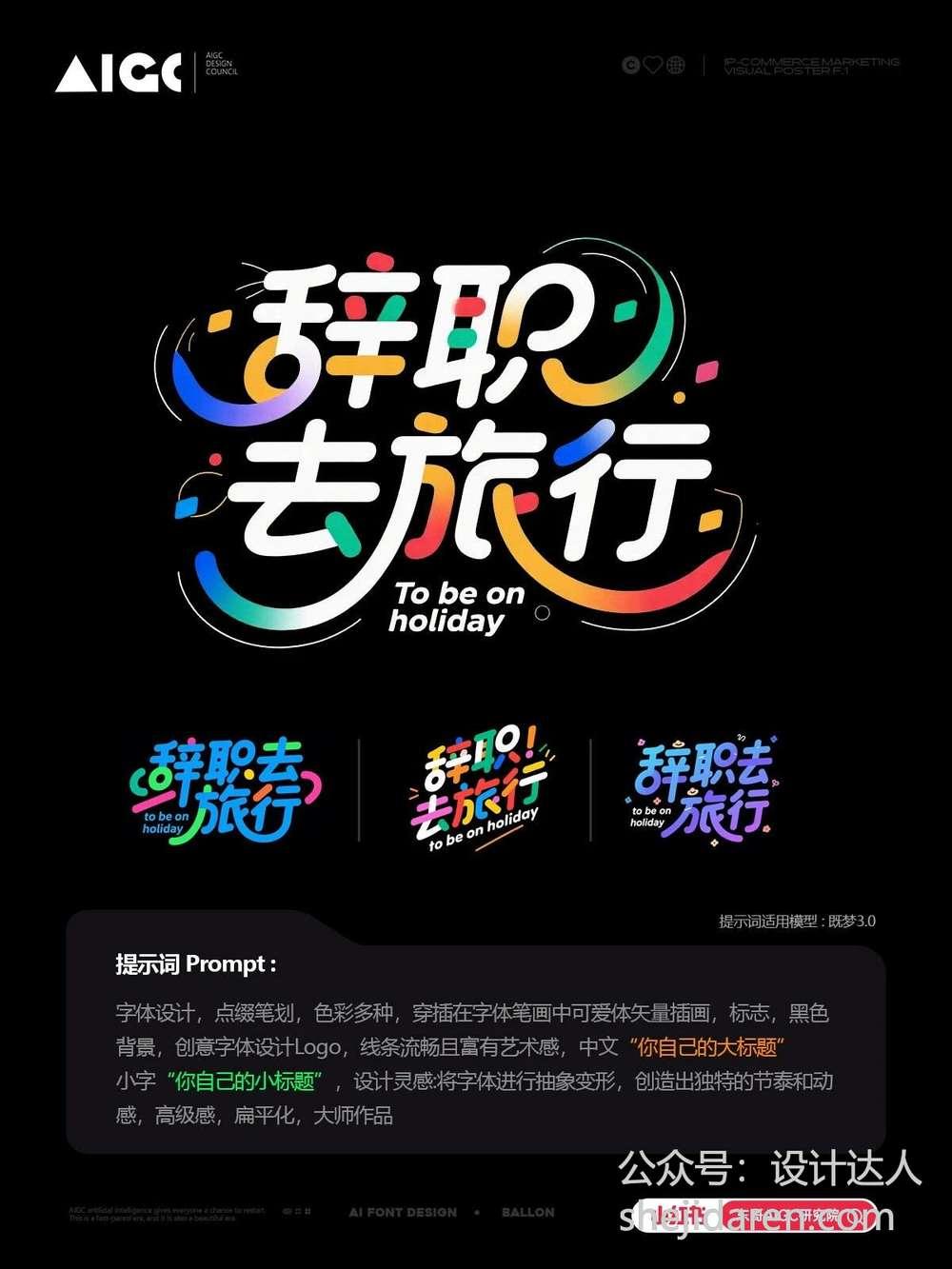 字体设计,点缀笔划,色彩多种,穿插在字体笔国中可爱体失量插画,标志,黑色背景,创意字体设计Logo,线条流且富有艺术感,中文“你自己的大标题”小字“你自己的小标题”,设计灵感:将字体进行抽象变形,创造出独特的节泰和动高级感,扁平化,大师作品