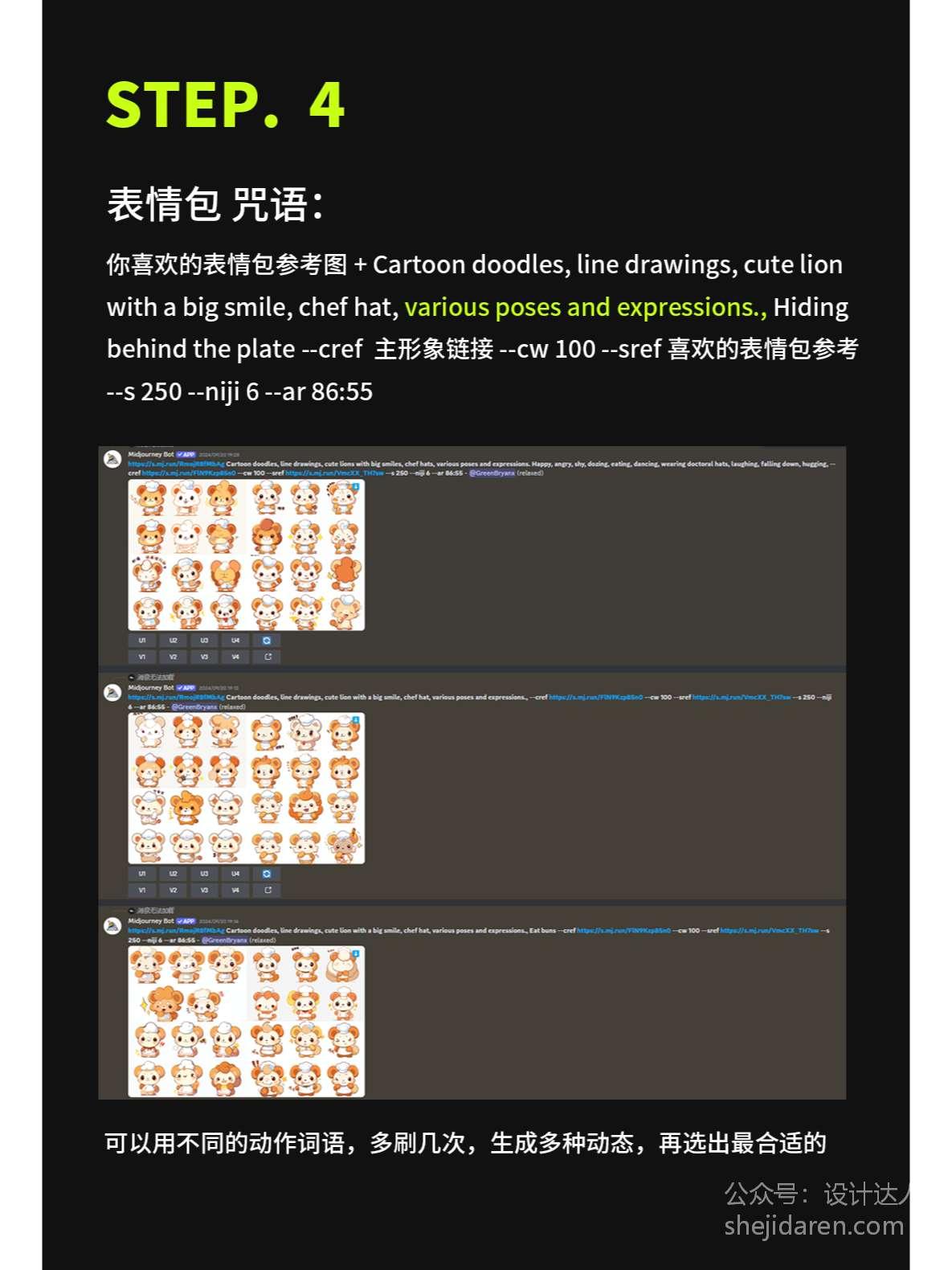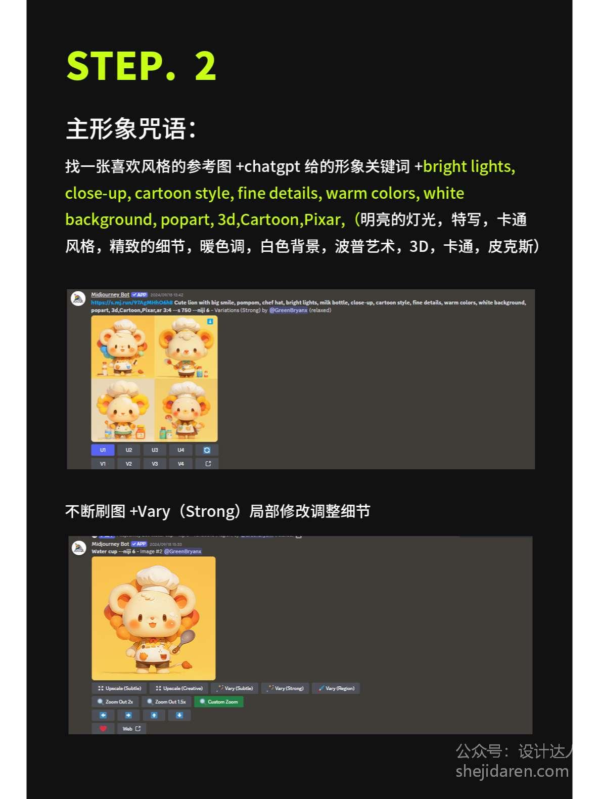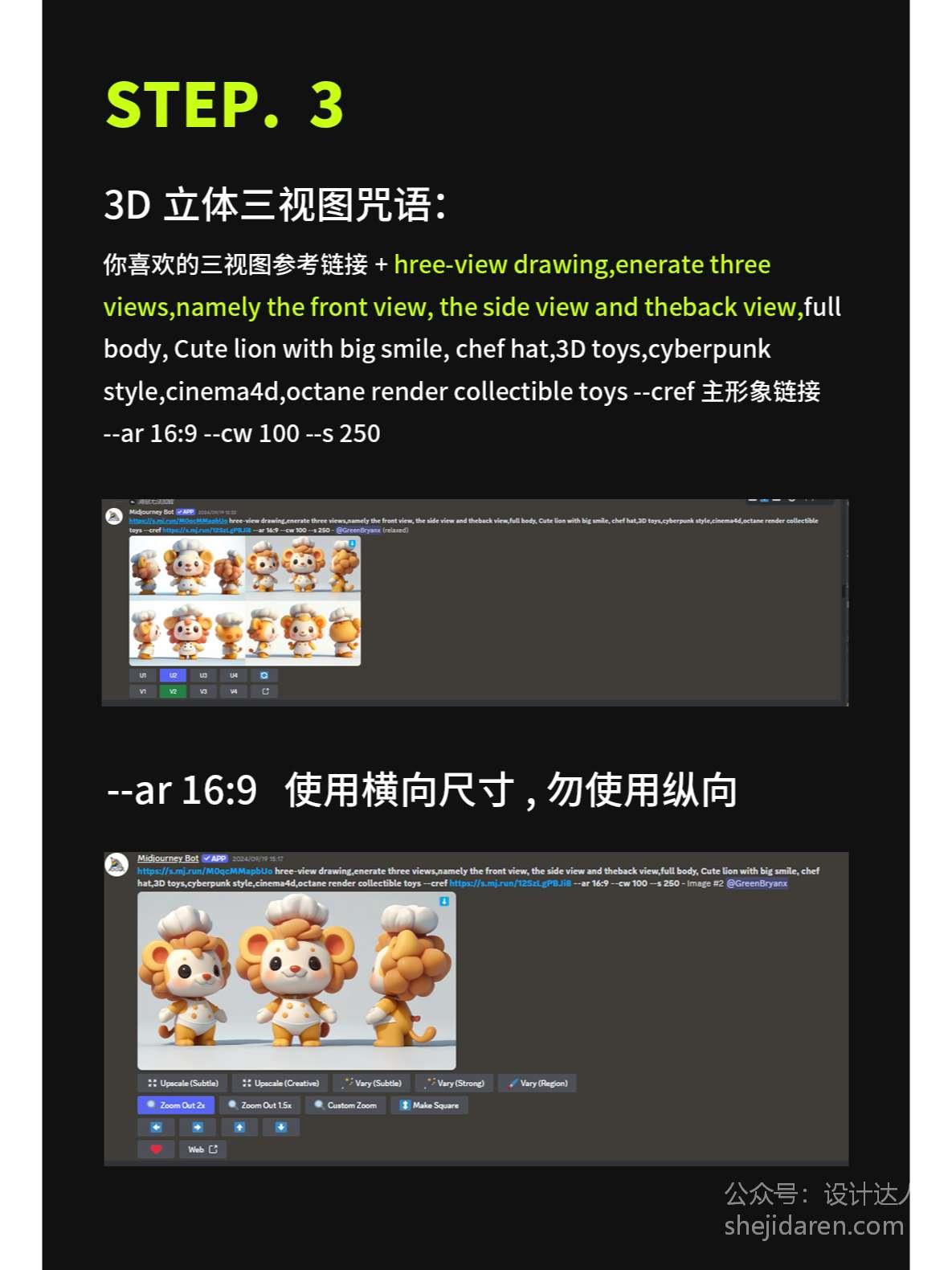 6、关于三维和二维人物一致性:可以使用Sref命令, 加了一些插画的风格参考图,局部通过Vary(Region)进行调整