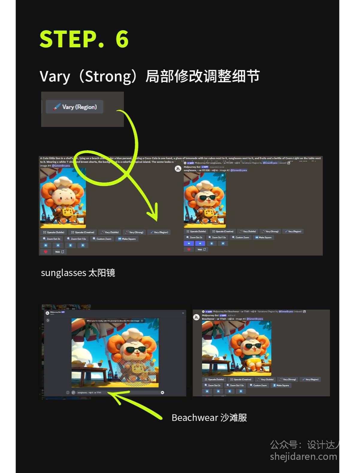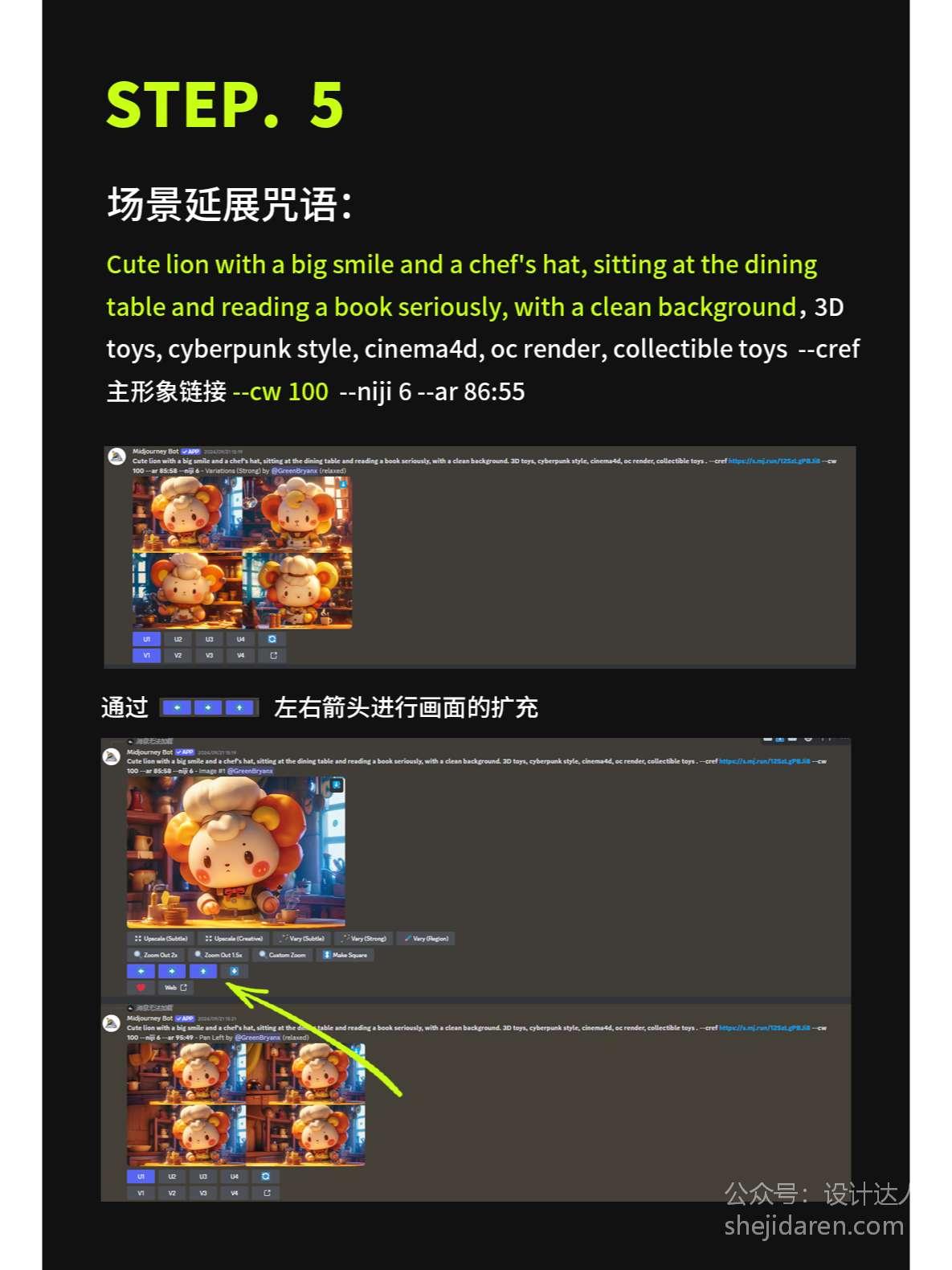 5、场景延展:使用chatgpt生成的场景延展,使用cref指令,确保输出的角色统一,Vary(Strong)局部修改调整细节