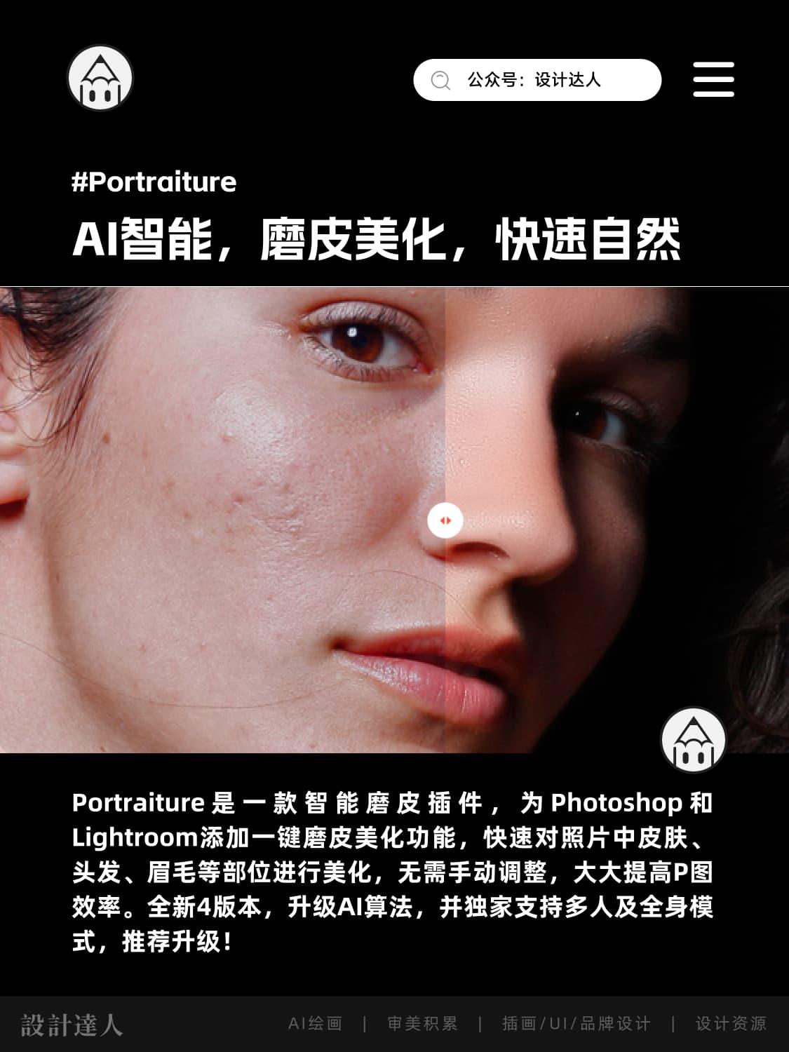 Portraiture插件大更新,各位WIN和Mac用户,尤其是摄影师和设计师们,好消息来啦!你们最爱的Portraiture插件已经更新,全面支持最新的Mac OS 14系统!这次设计达人整理了一键磨皮插件Portraiture的新版和旧版(最新为Portraiture4.5)。