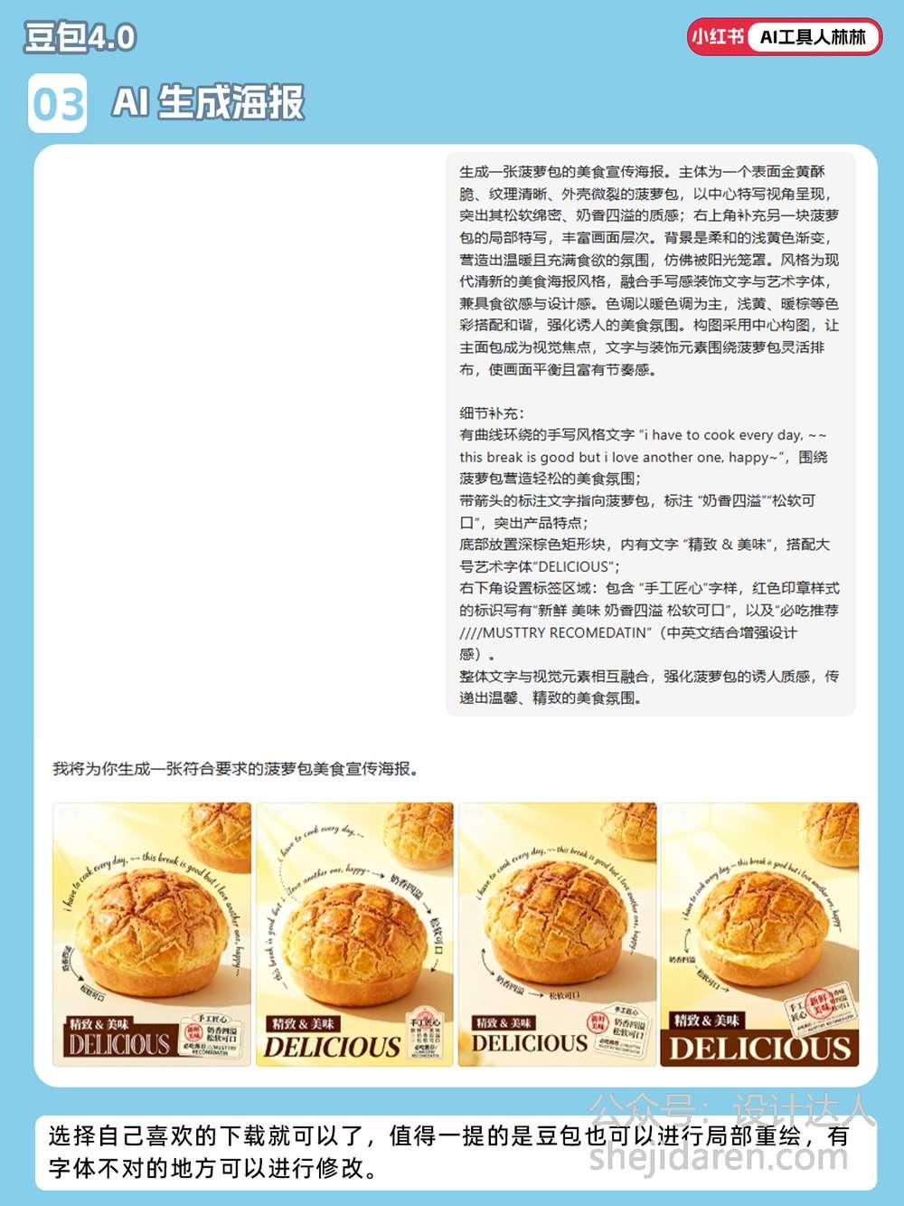 重点是,它还保留了参考图的风格,细节到位,完全不输人工设计,快去体验一下豆包生图4.0的魅力吧!