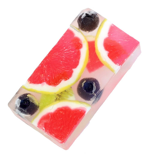 这些创意的水果香皂均由手工制作,并由多种水果造型混合,橙子、葡萄、猕猴桃等等,看上去新鲜诱人,更惊艳的是,还有茉莉花的香气和热带水果的华丽气息,