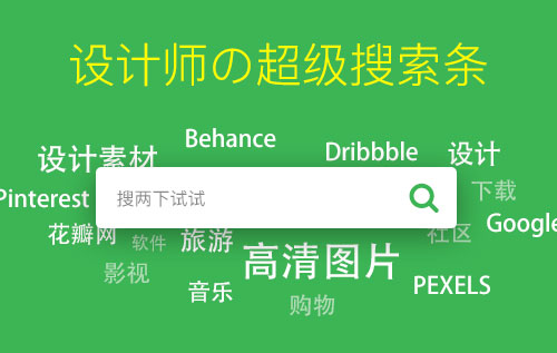我希望这个搜索条可以搜索设计界最强的几个大站,如 Dribbble, Behance, Pinterest, 设计达人网, 然而这还不够,我还需要搜索免费高清图片、PSD 源文件、Photoshop 特别版!